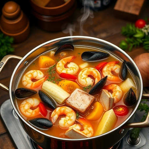 - 해산물 투입: 홍합, 새우, 오징어 등 나머지 해산물을 넣습니다.