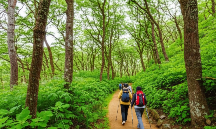 <이미지: 금오산 올레길의 숲 속 풍경과 잘 정비된 산책로>