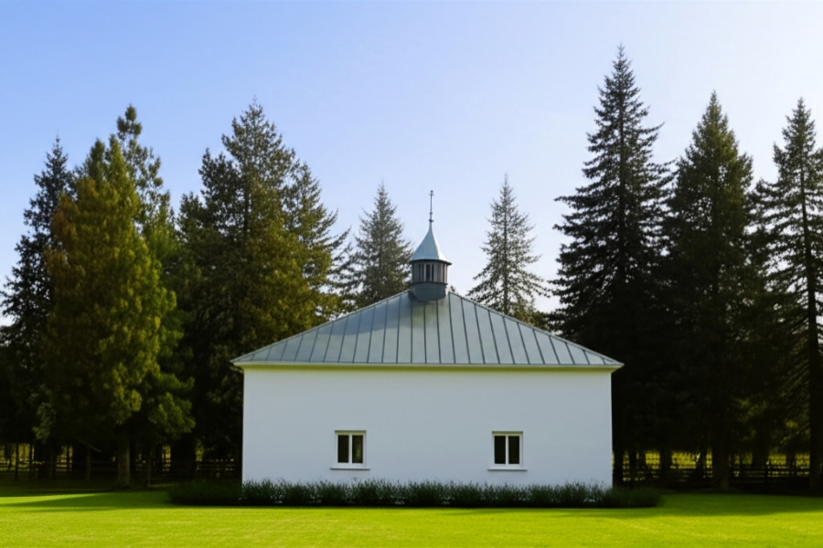 <이미지: 소나무 숲으로 둘러싸인 솔뫼성지의 평화롭고 경건한 풍경>