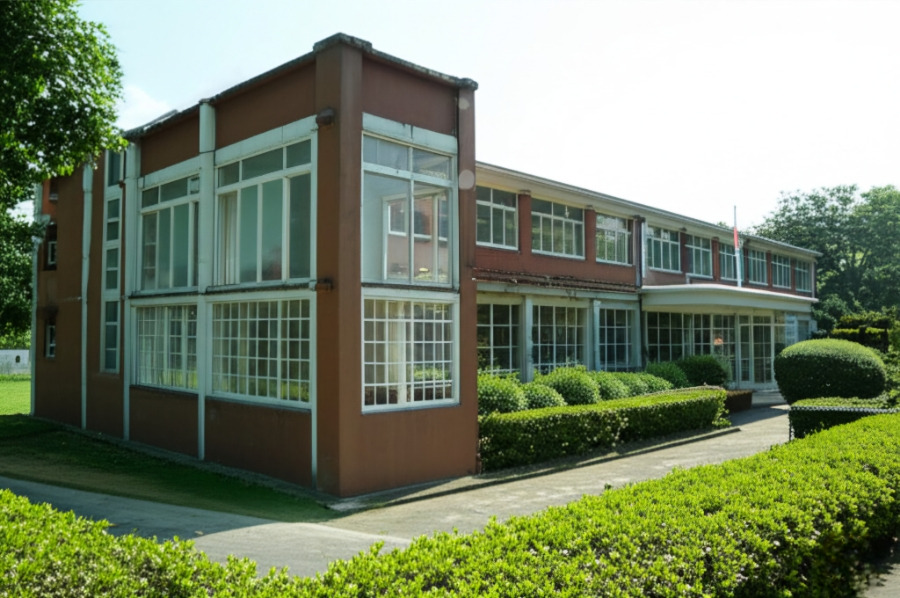 <이미지: 낡은 학교 건물이 아름다운 갤러리로 변신한 아미미술관의 독특한 외관과 정원의 조화>