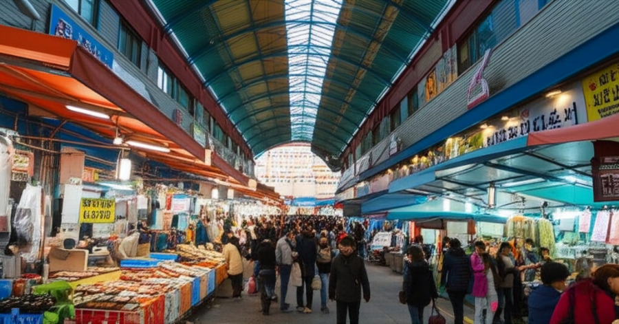 <이미지: 서문시장의 다양한 먹거리 또는 시장 풍경>