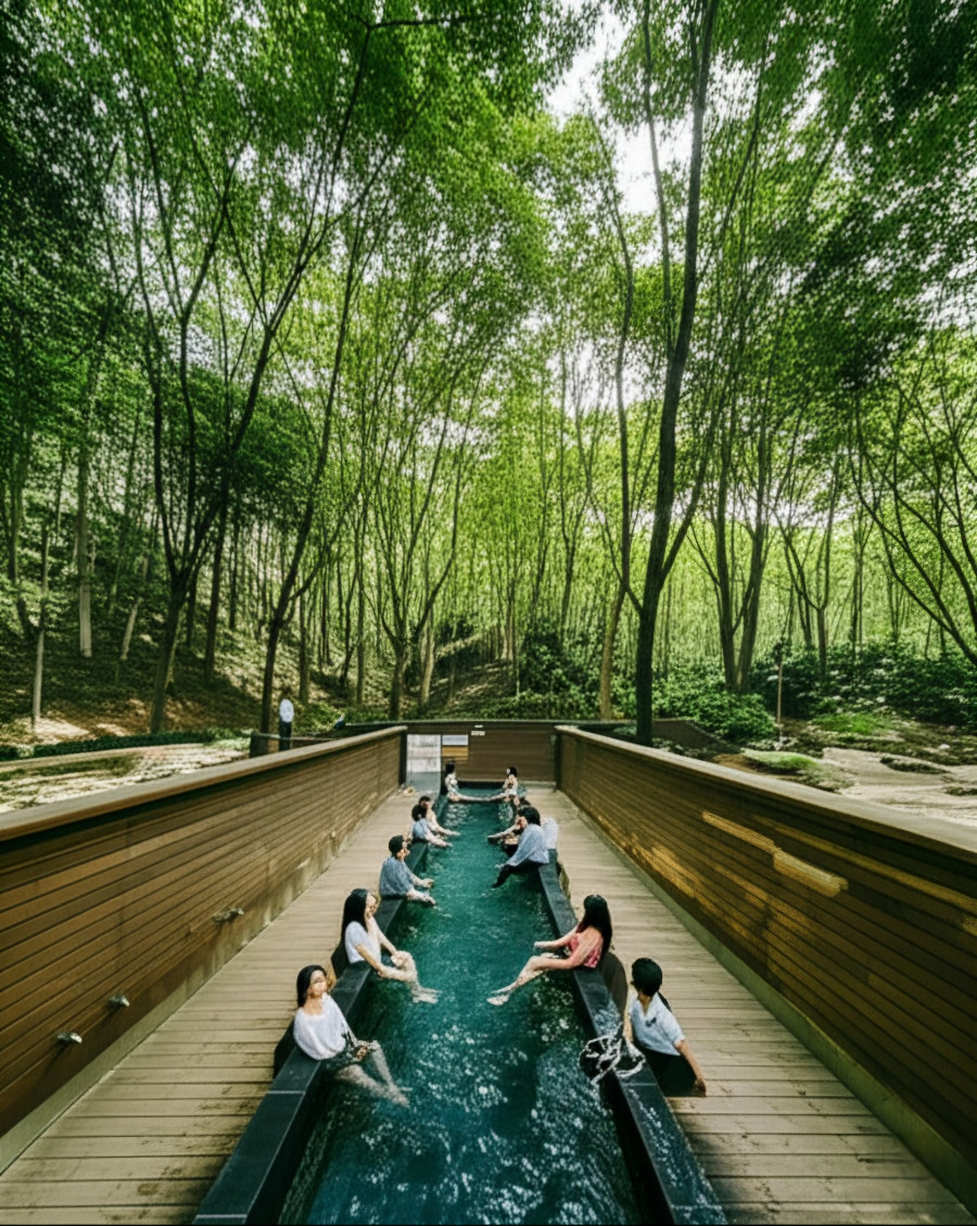 따뜻한 온천수에 발 담그고 피로 풀기!