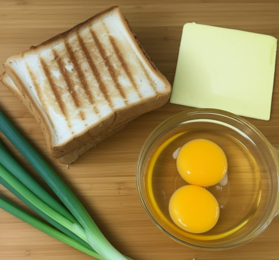 <이미지: 달걀토스트 재료 (식빵, 달걀, 우유 등)>