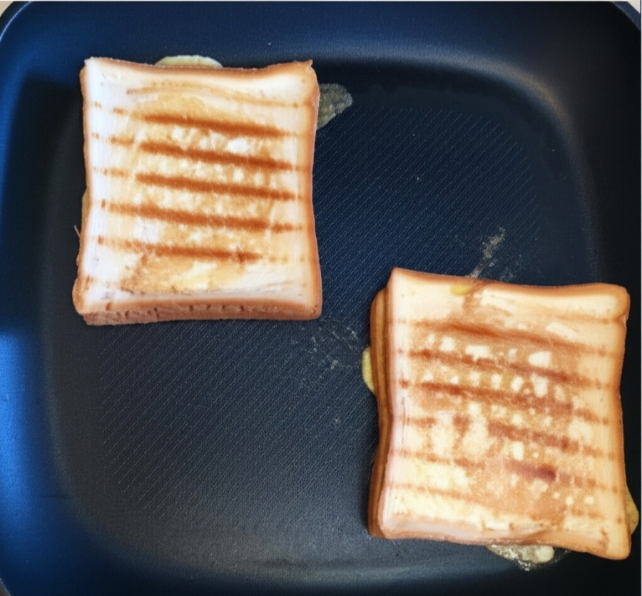 <이미지: 팬에 달걀토스트를 굽는 모습>