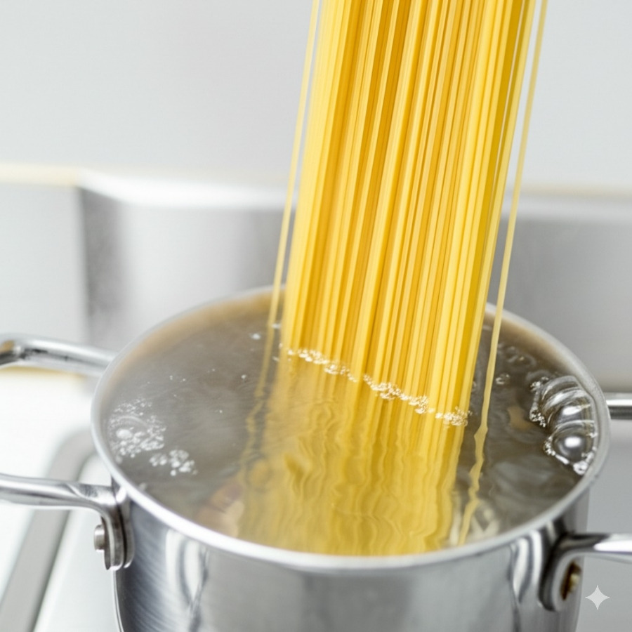 **<이미지: 끓는 물에 소면을 넣고 삶는 모습과 찬물에 헹구는 모습>**