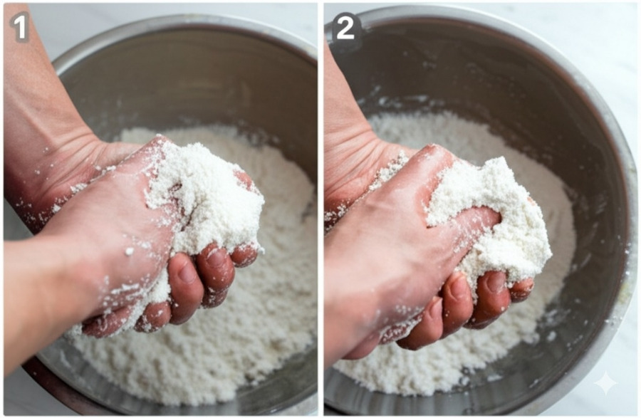<이미지: 밀가루와 소금으로 쭈꾸미를 주무르는 모습>