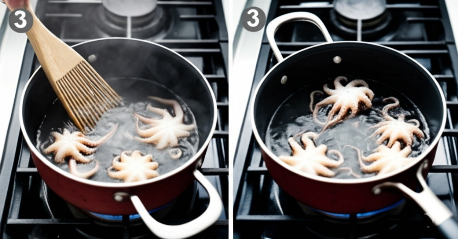 <이미지: 끓는 물에 쭈꾸미를 데치는 모습>