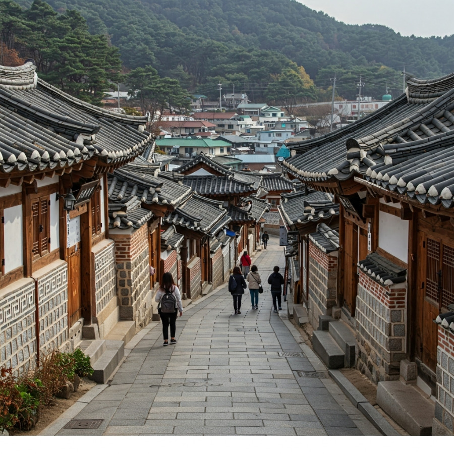 <이미지: 전주 한옥마을의 아름다운 기와지붕 풍경>