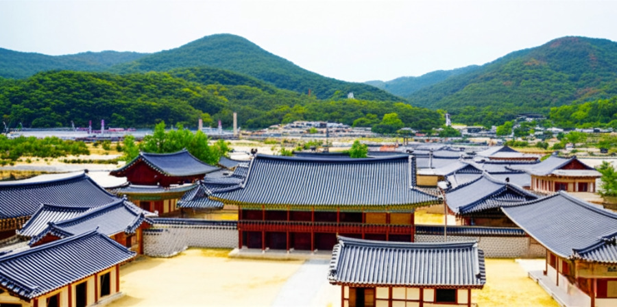<이미지: 문경새재 오픈세트장의 고풍스러운 기와집과 거리 풍경>