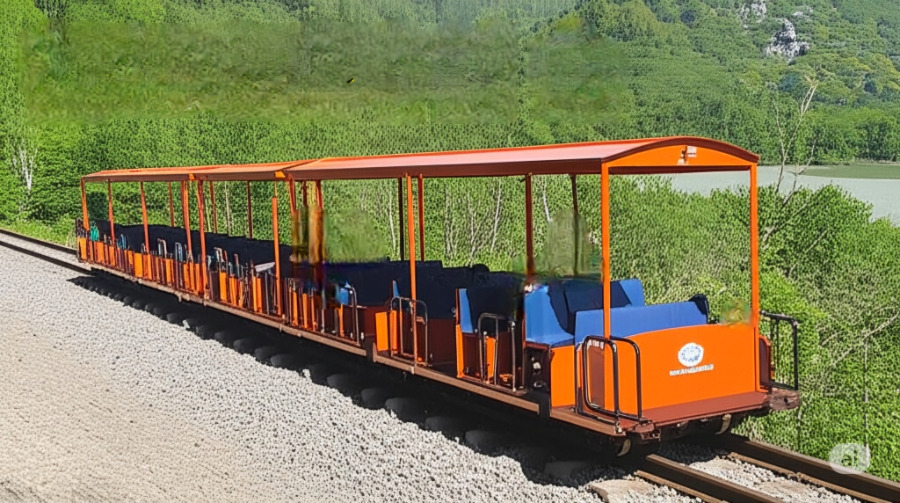 <이미지: 폐철로 위를 달리는 문경 철로자전거와 주변 풍경>