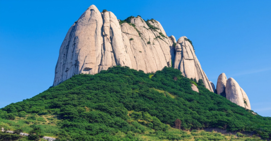<이미지: 웅장한 산방산의 모습 또는 독특한 지형의 용머리 해안 풍경>