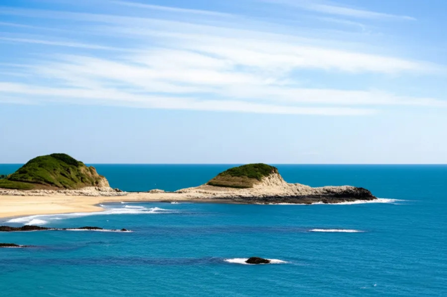 <이미지: 송악산 정상에서 바라본 바다 풍경 또는 형제섬이 보이는 해안 풍경>
