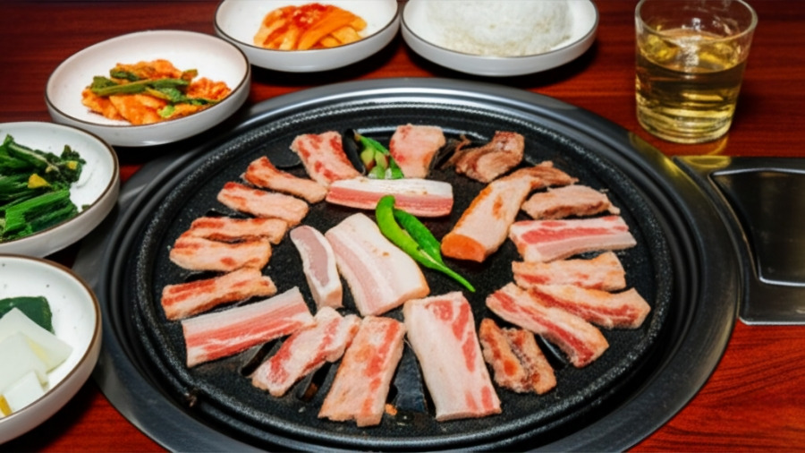 <이미지: 푸짐하고 맛있어 보이는 종로의 대표 음식 (예: 삼겹살 구이, 곱창볶음)과 막걸리 잔>
