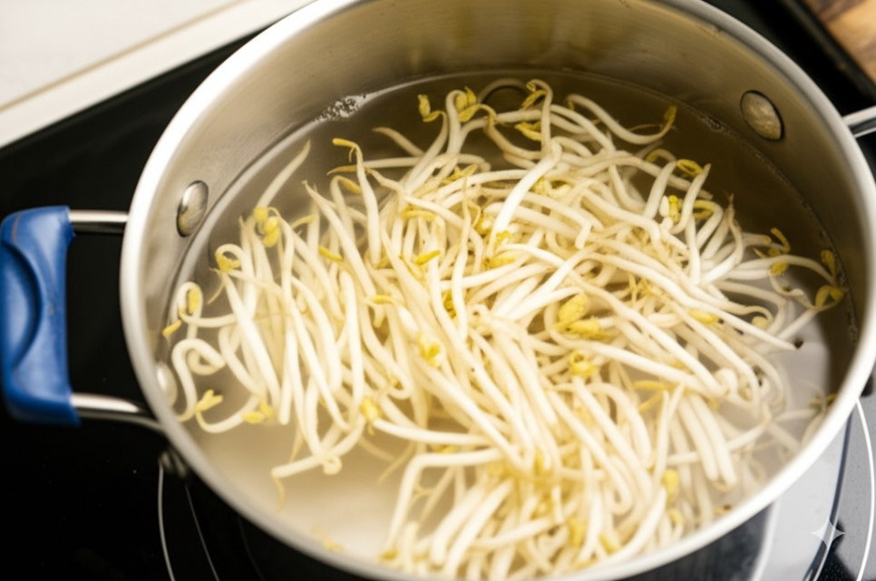 <이미지: 냄비에 물과 콩나물을 넣고 끓이는 모습>