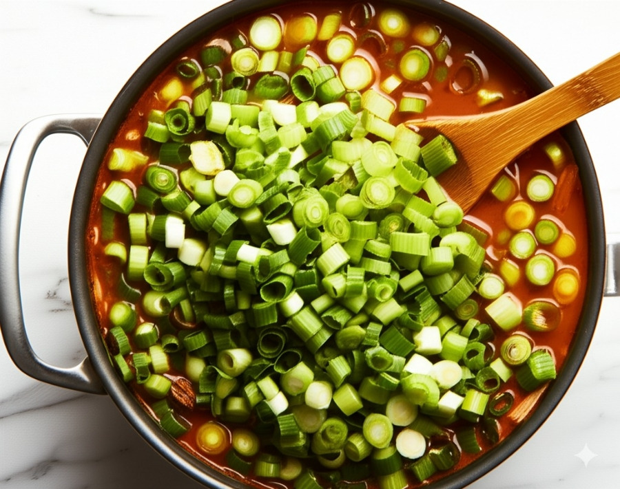 **<이미지: 대파 푸른 부분을 넣고 끓이는 모습>**