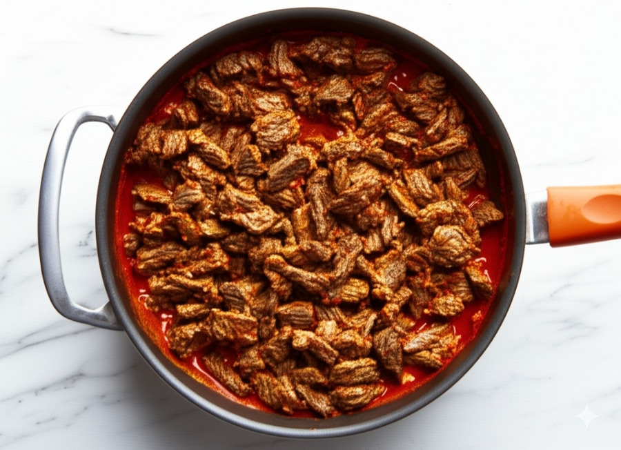 **<이미지: 냄비에 소고기를 넣고 삶는 모습>**