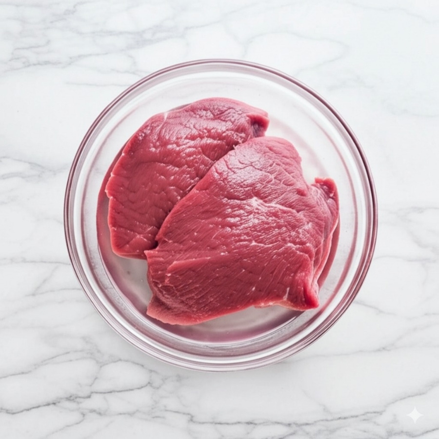 **<이미지: 볼에 담긴 소고기가 핏물을 빼고 있는 모습>**