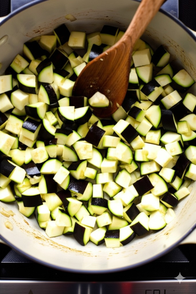 <이미지: 양파, 양배추, 애호박을 넣고 볶는 모습>