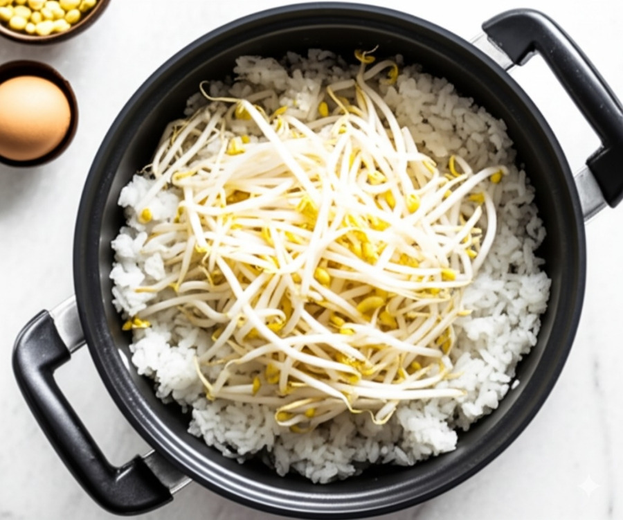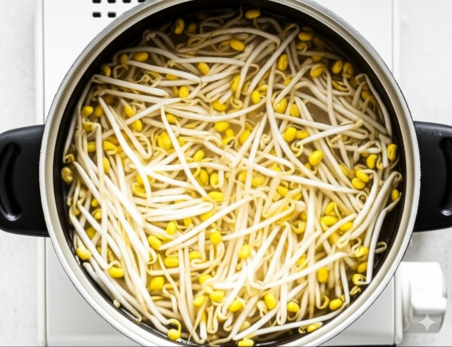 <이미지: 냄비에 콩나물과 물을 넣고 끓이는 모습>