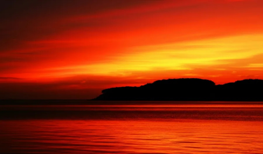 <이미지: 붉은 태양이 지평선 너머로 넘어가는 아름다운 서해 일몰 모습>