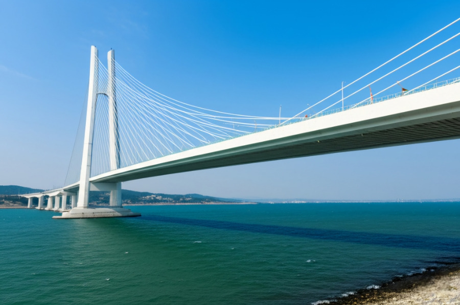 <이미지: 푸른 바다 위로 길게 뻗어있는 영흥대교의 시원한 모습>