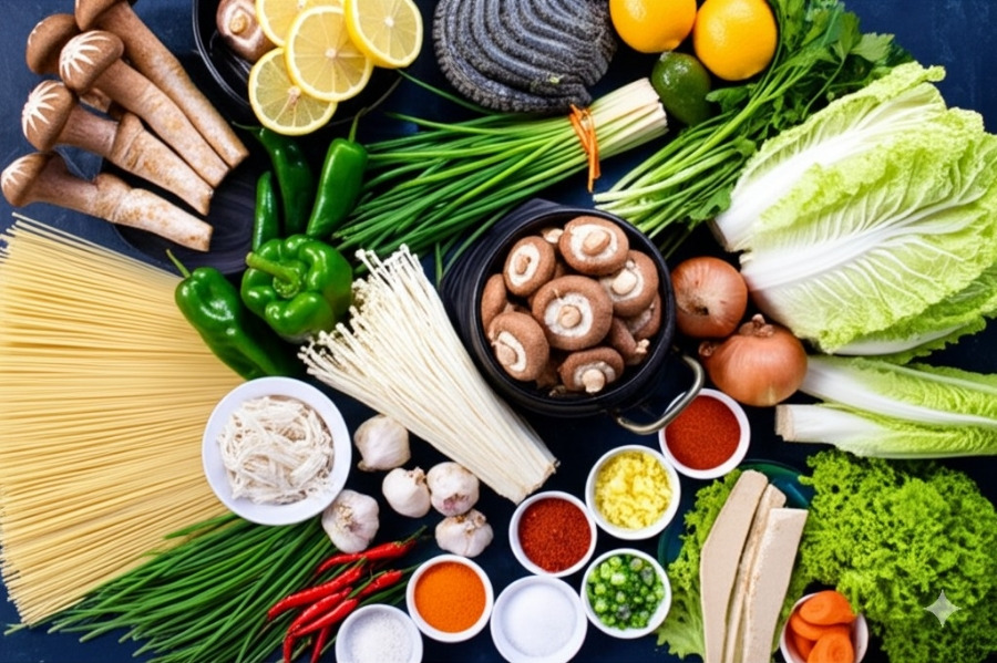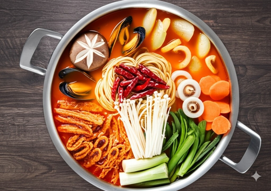 얼큰한 국물에 윤기 자르르 흐르는 차돌박이, 푸짐한 해산물과 채소까지! 보기만 해도 속이 확 풀리는 듯하네요. 🤤