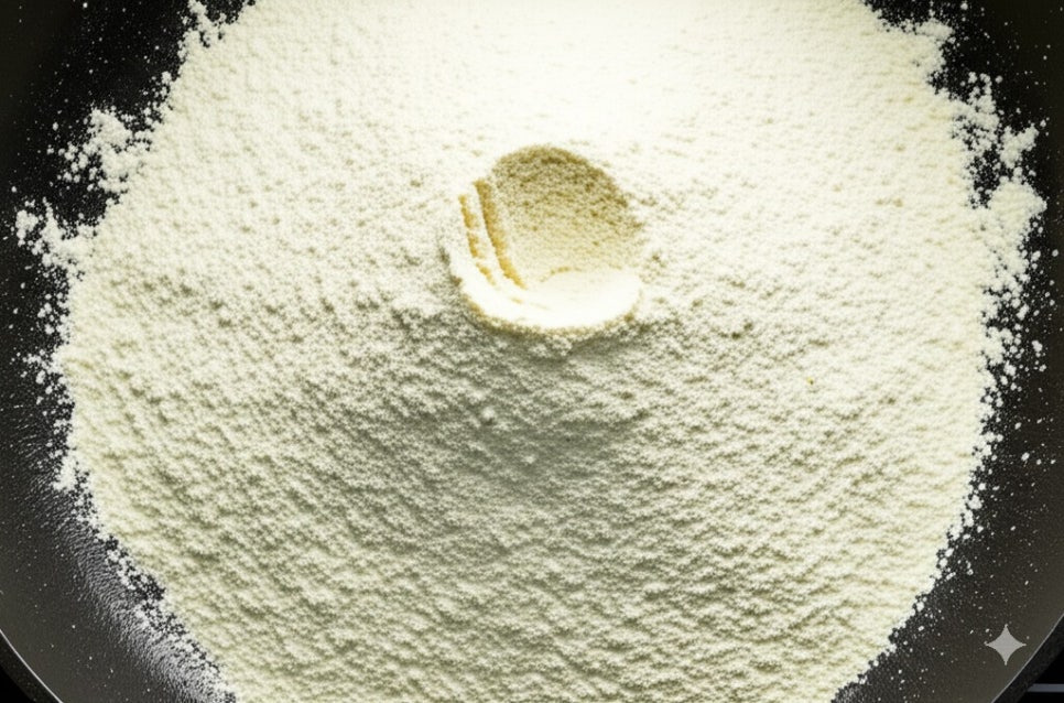 <이미지: 볶은 양파에 밀가루를 넣고 섞는 모습>
