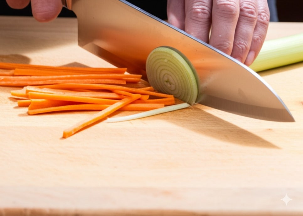 - 당근을 넣으실 경우 얇게 채 썰어줍니다.