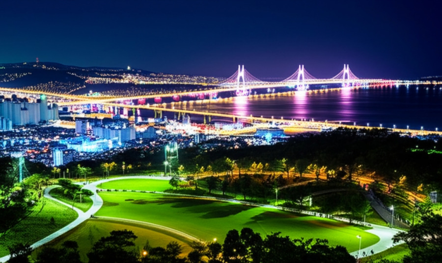<이미지: 울산대교 전망대에서 바라본 야경 또는 울산대교 모습, 맛있는 저녁 식사 사진>