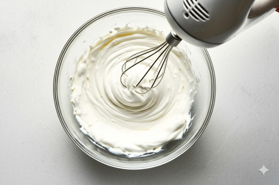<이미지: 생크림으로 휘핑크림을 만드는 모습>