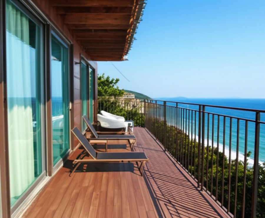 <이미지: 바다가 보이는 고흥 펜션 풍경 또는 맛있는 고흥 특산물 저녁 식사 사진>