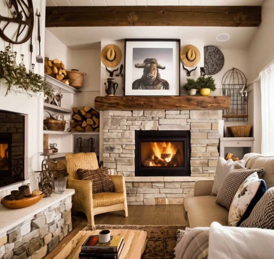 러스틱 & 컨트리 스타일: 나무, 돌, 패브릭 등 자연 소재를 적극 활용하고, 따뜻하고 편안한 분위기를 연출합니다. 빈티지 가구나 소품을 더하여 아늑함을 더합니다.