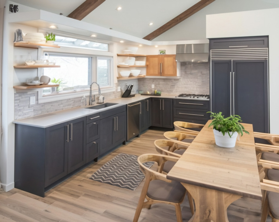 <이미지: 편리한 동선을 고려하여 설계된 전원주택 주방 인테리어>