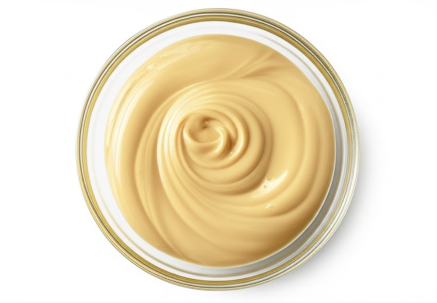 <이미지: 땅콩버터와 다른 소스 재료들을 볼에 넣고 섞는 모습>