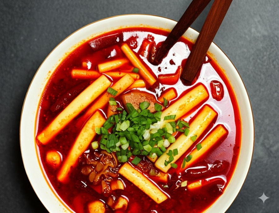 **<이미지: 완성된 마라탕에 참기름과 즈마장을 살짝 뿌린 모습>**