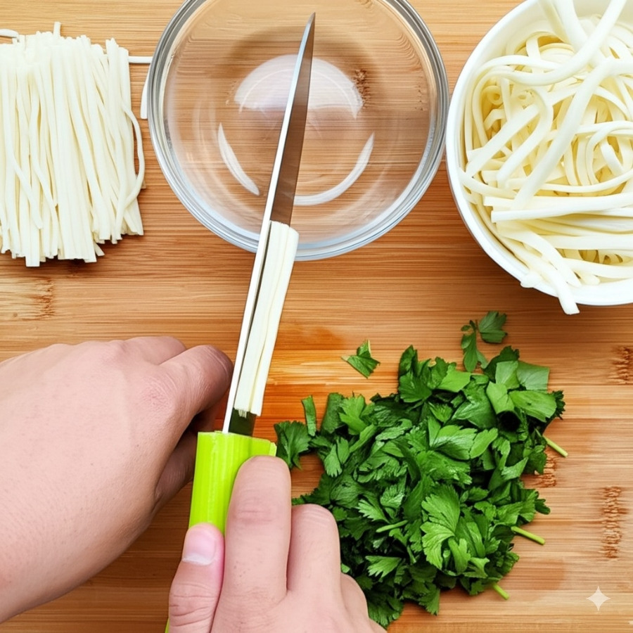 **<이미지: 건두부 자르기, 채소 손질하기 등의 준비 과정>**