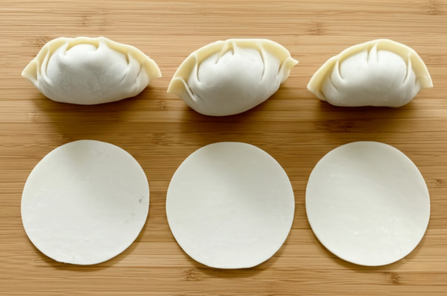 ⑤ 완성된 만두는 서로 붙지 않도록 쟁반이나 접시에 간격을 두고 올려둡니다.