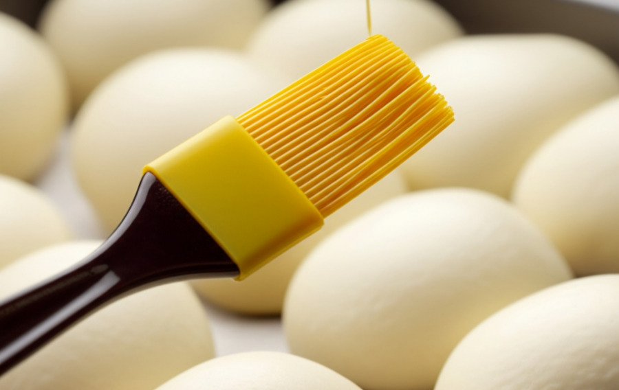 2차 발효가 끝난 반죽 윗면에 달걀물을 붓으로 조심스럽게 발라줍니다.