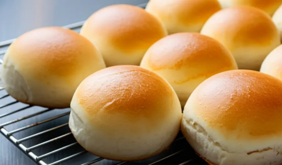 <이미지: 갓 구워져 살짝 갈색빛을 띠는 둥근 팥앙금빵 여러 개가 놓여 있고, 그중 하나는 반으로 갈라져 붉은 팥앙금이 가득 차 있는 클로즈업 사진. 따뜻한 김이 살짝 나는 모습.>
