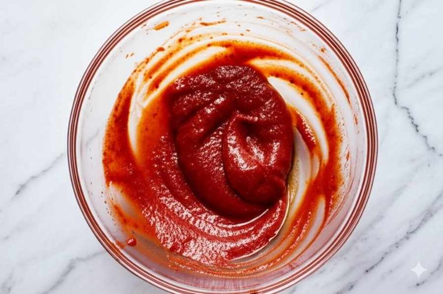 **<이미지: 볼에 불닭 양념 재료들을 넣고 섞는 모습>**