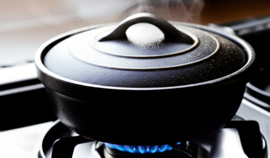 <이미지: 솥에서 밥이 끓고 뜸이 드는 모습>