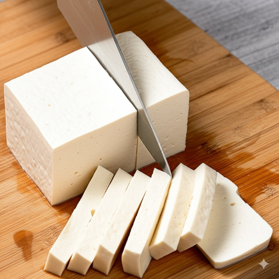 <이미지: 데친 두부를 먹기 좋은 크기로 썰어 놓은 모습>