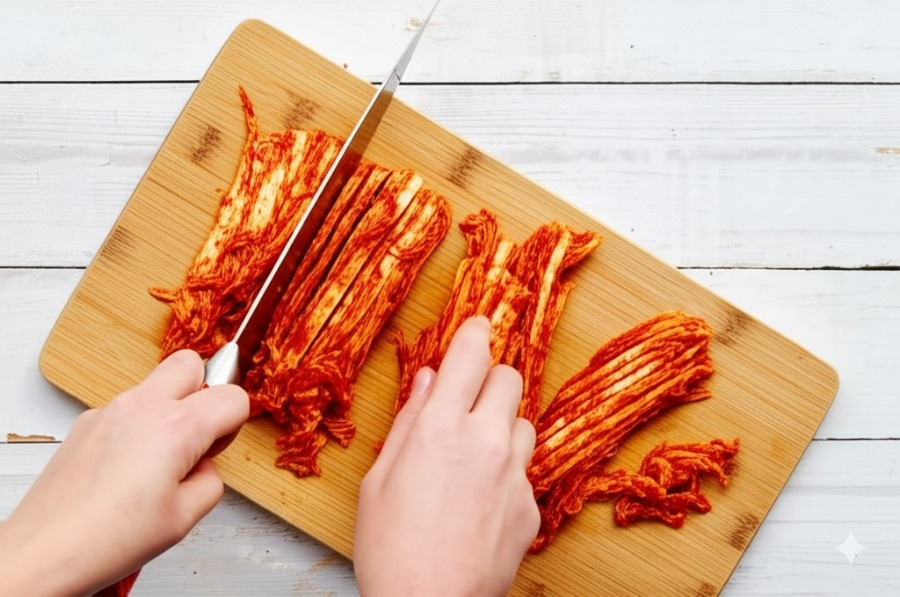 * 김치는 먹기 좋은 크기로 잘게 썰어줍니다. 김칫국물은 따로 준비해주세요.