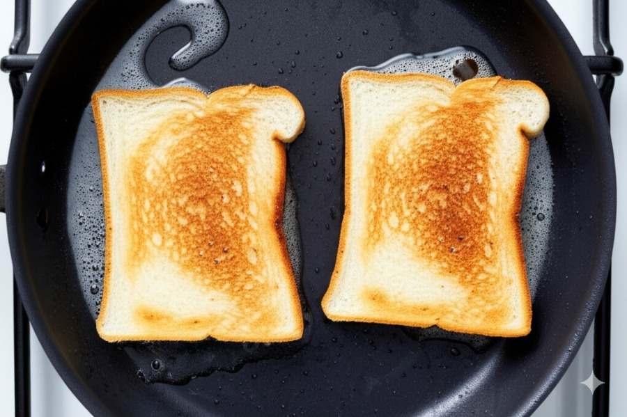 **<이미지: 토스터에 식빵을 굽거나 팬에 버터를 녹여 식빵을 굽는 모습>**