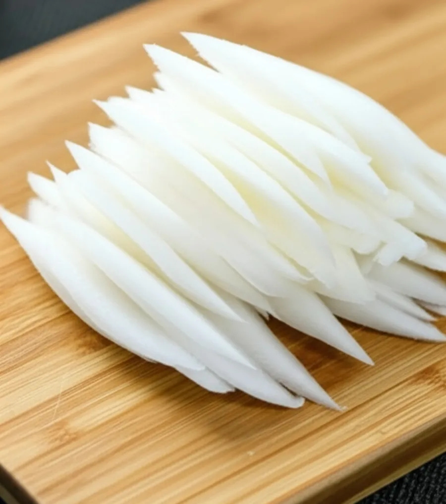 <이미지: 썰어 놓은 무가 접시에 가지런히 담겨 있는 모습.>