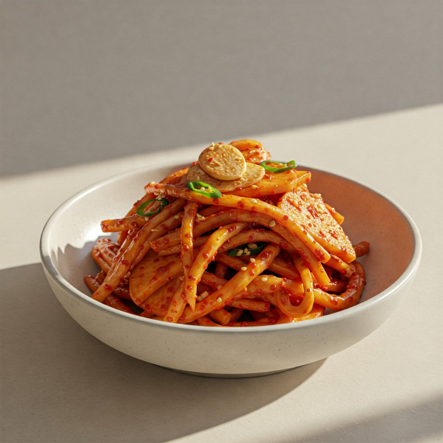 ④ (선택 사항) 바로 먹어도 맛있지만, 냉장고에서 30분~1시간 정도 두면 양념이 무에 더 잘 배어 맛이 깊어집니다.
