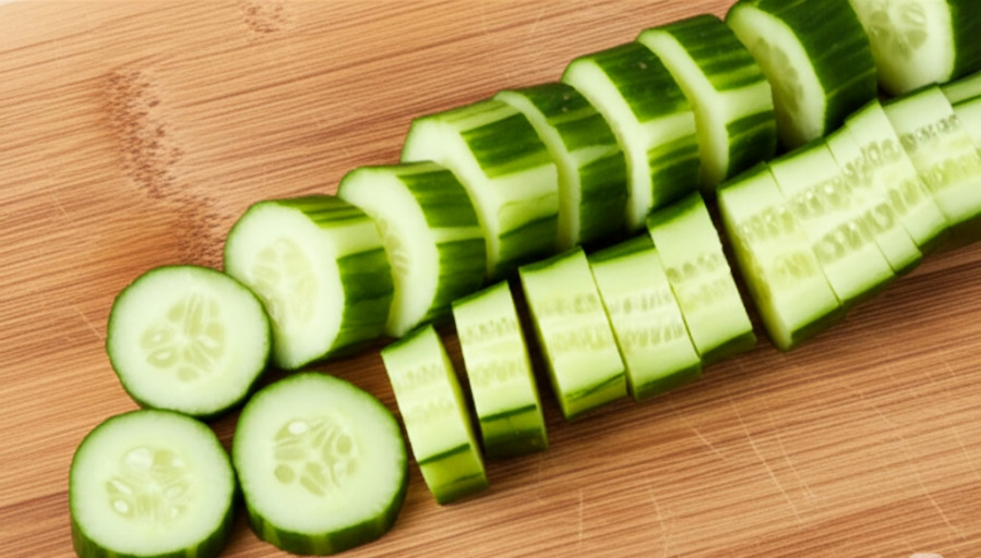 오이는 깨끗하게 씻어 물기를 제거하고 먹기 좋은 크기로 썰어줍니다. (길게 4등분 하거나 깍둑썰기 등 취향에 따라)