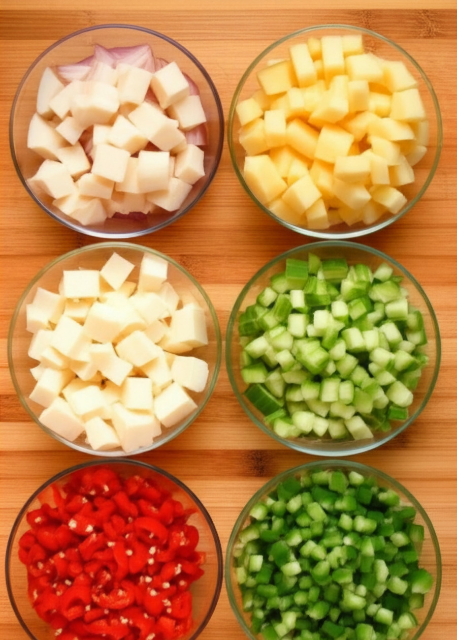 재료를 비슷한 크기로 썰어야 보기에 좋고 익는 속도도 비슷해요! 😉