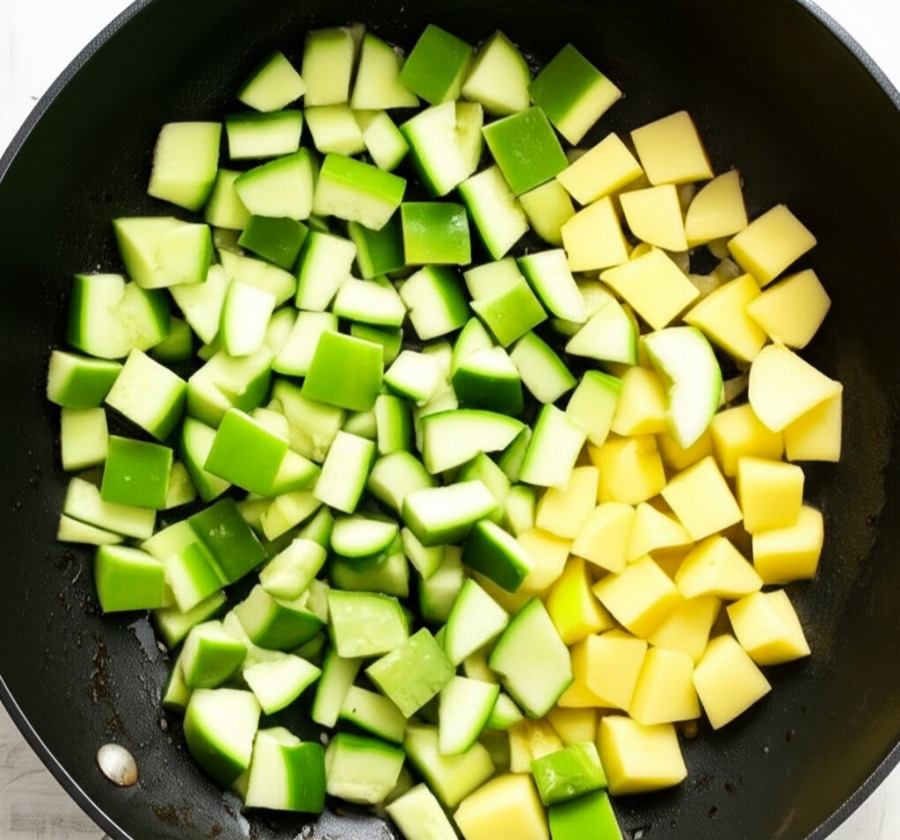 감자가 반 정도 익으면 애호박을 넣고 살짝 볶아줍니다.