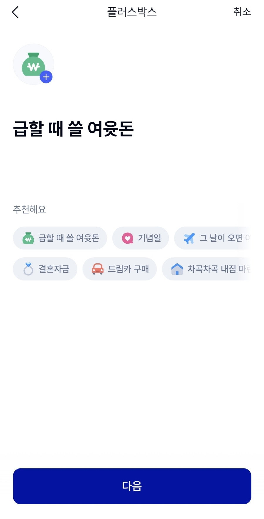최대 10개까지 플러스박스를 만들 수 있습니다. 각 플러스박스 이름을 '여행 갈 돈', '비상금', '자동차 교체 자금', '세금/공과금', '갖고 싶은 물건' 등으로 설정해 보세요. 돈의 목적을 명확히 하면 충동적인 소비를 줄이고 목표 달성에 집중하는 데 도움이 됩니다.